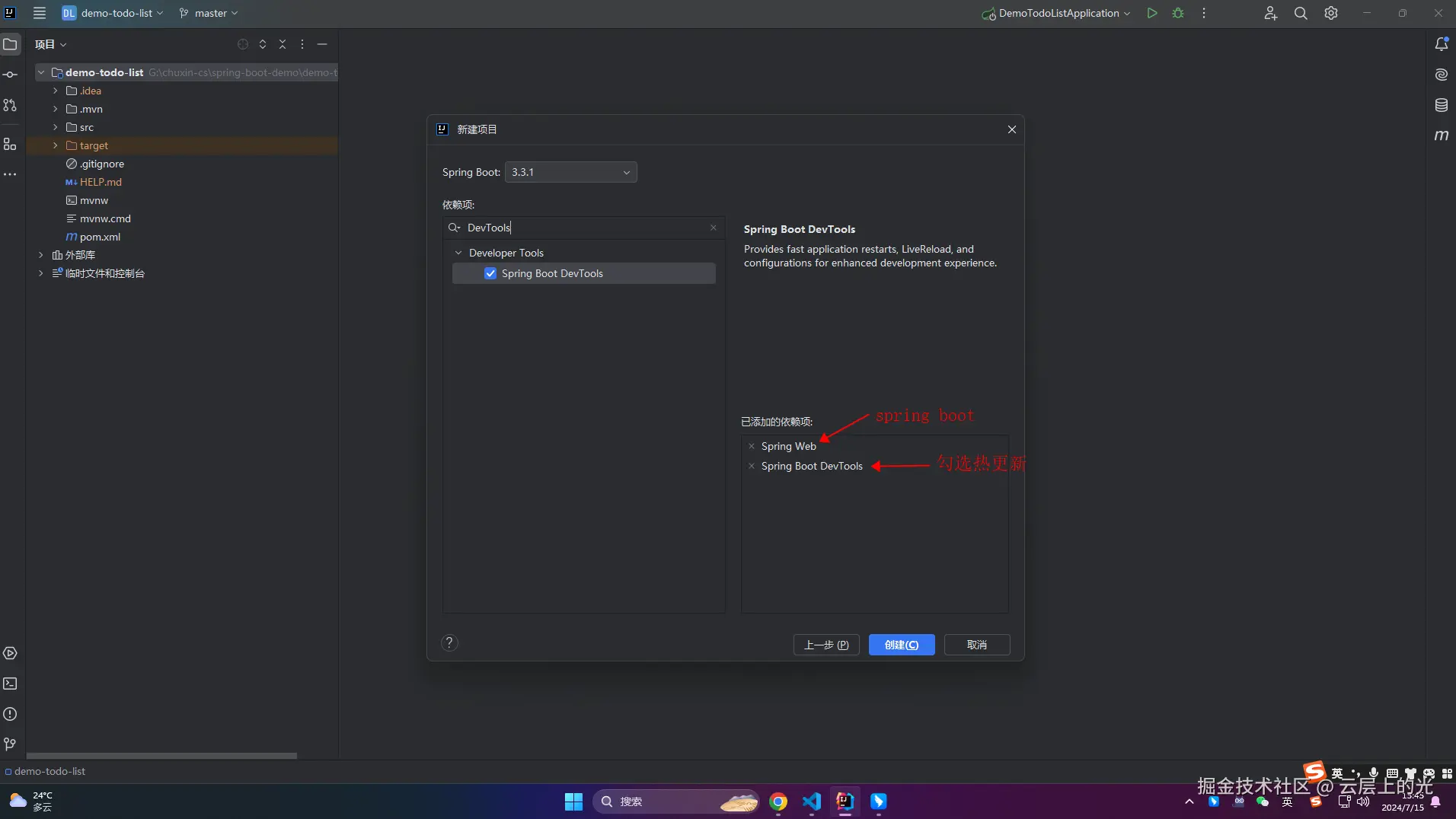 2、选择依赖,完成项目创建~