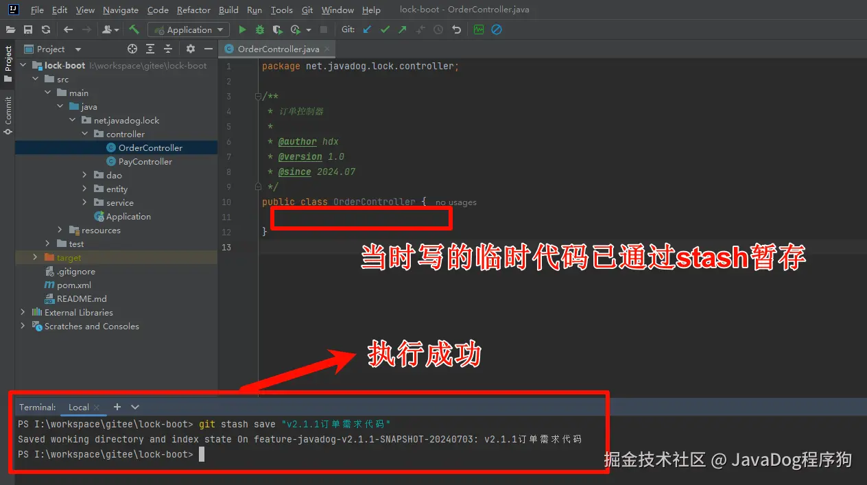 2.使用 git stash save "message" 来暂时存储当前的修改,并附上一个备注信息