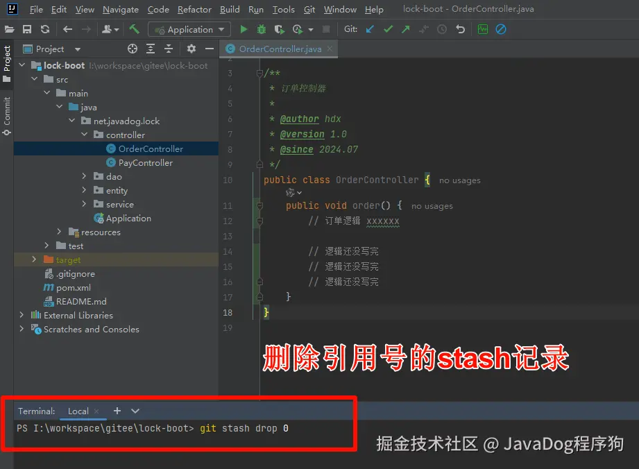 # 通过git stash list 查询后,删除指定的stash引用