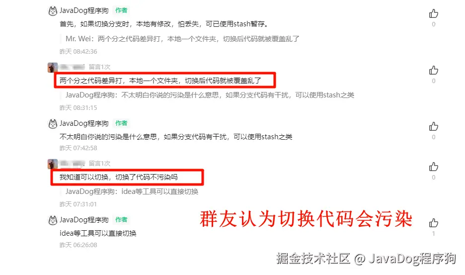 本狗在回复留言时,发现小伙伴对于切换分支有所疑惑: