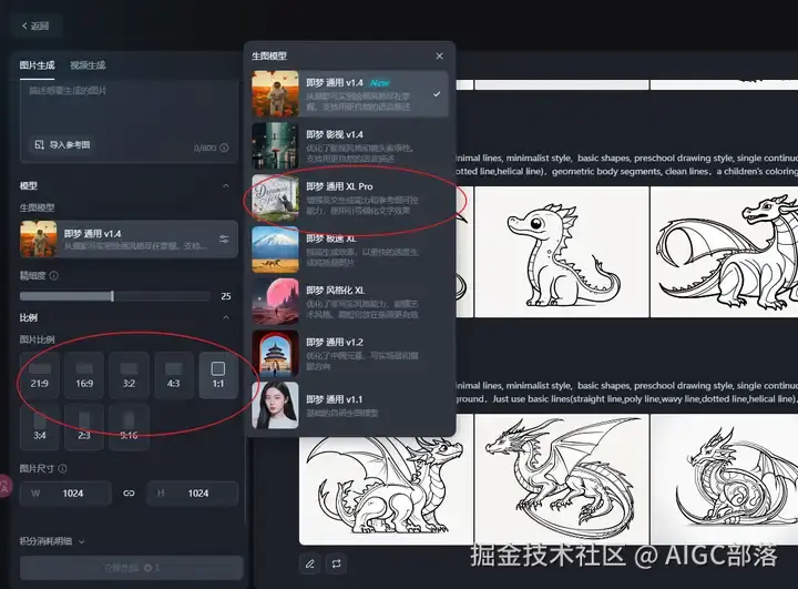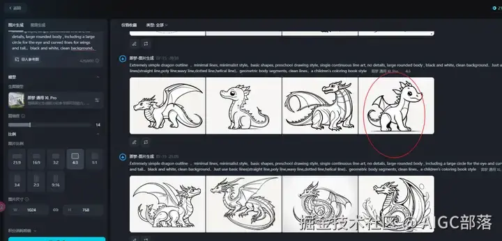 选择模型:即梦通用XL PRO,图片比例可以选择4:3,也可以其他比例,根据自己需求来定: