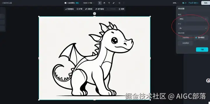 然后点击右上角的导出,导出这张高清大图,就可以给孩子绘画教学用了。这种简笔画很简单,即使没有绘画基础的小朋友也可以模仿学习。
