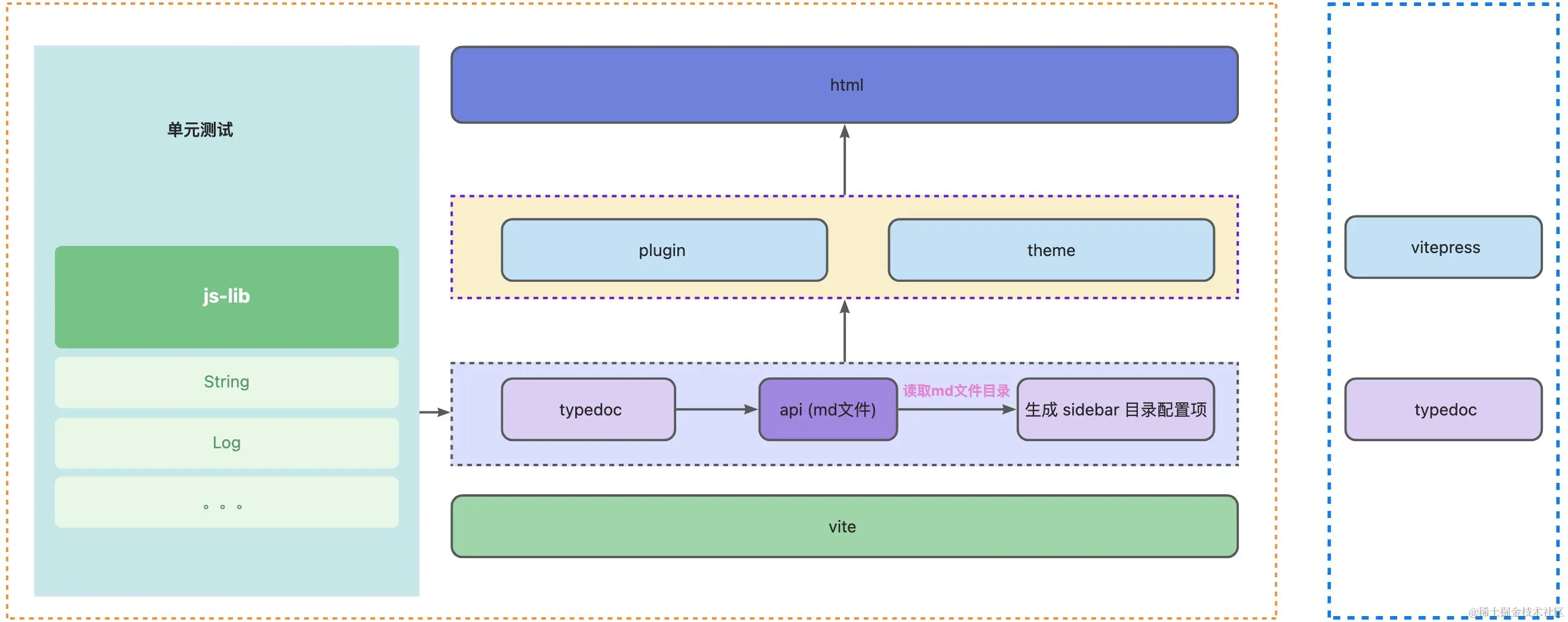 typedoc 读取方法的函数签名并编译成 markdown,vitepress 将 markdown 转成文档。