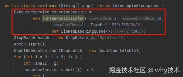 首先,我们把目光聚焦在线程池这里: