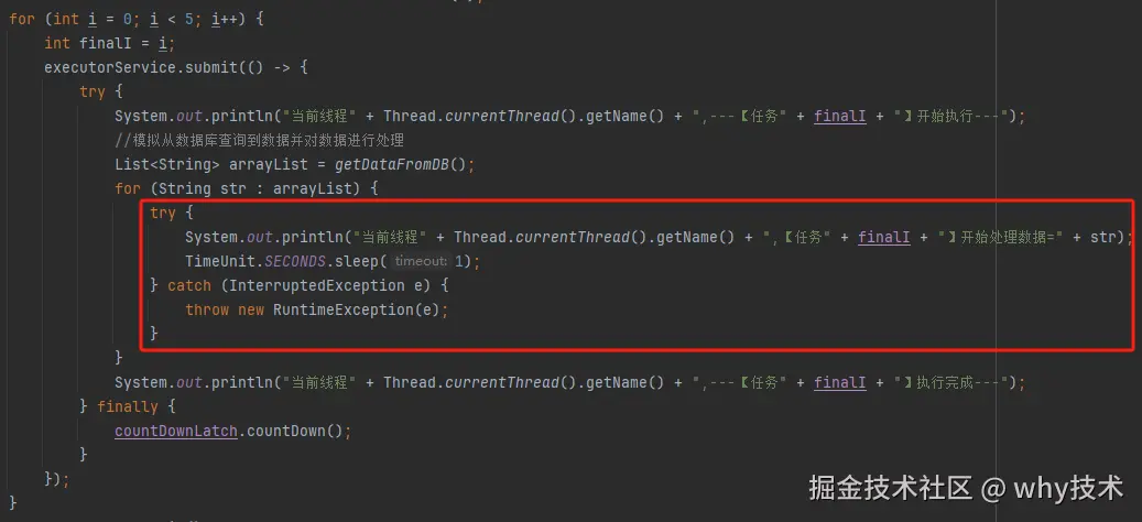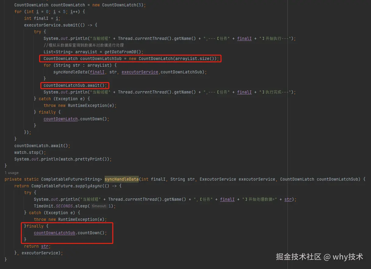 问题就是由于转异步了,所以 for 循环里面的任务中的 countDownLatch 很快就减到 0 了。