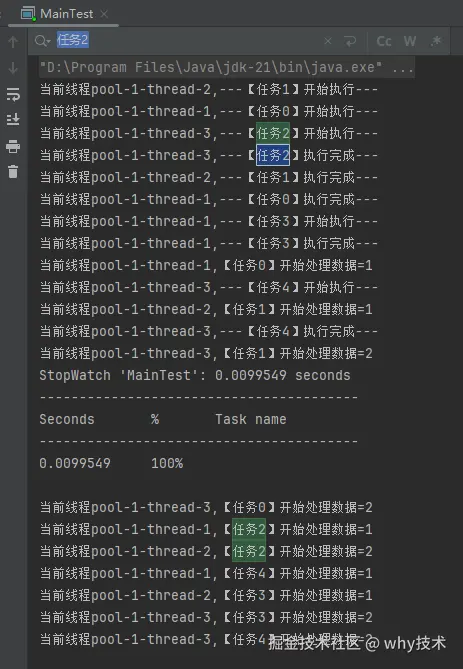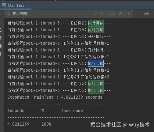 从日志输出上也可以看出,在输出了 StopWatch 的日志后,各个任务还在处理数据。