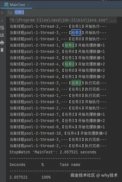 从日志输出来看,任务 2 需要处理的两个数据,确实是在不同的异步线程中处理数据,也实现了我的需求。