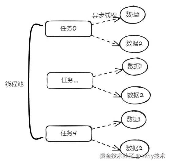 这个地方从数据库捞出来的数据,它们之间是没有依赖关系的,也就是说它们之间也是可以并行执行的。