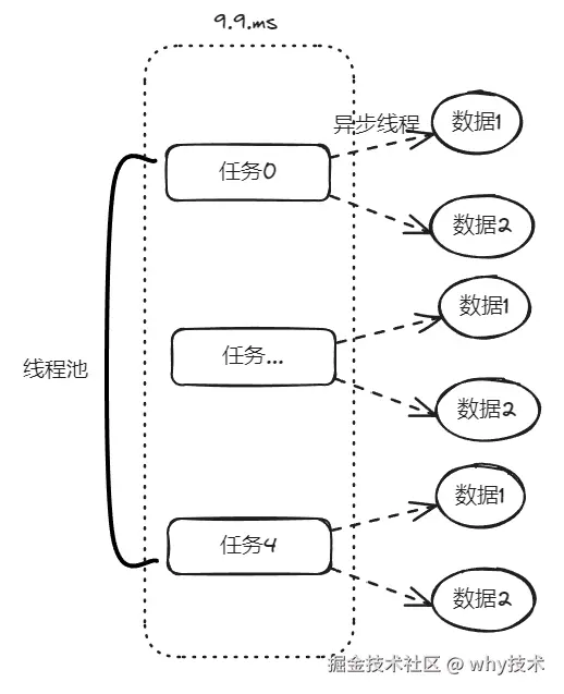 9.9ms 只是任务提交到线程池的时间,每个任务的数据处理时间还没算呢:
