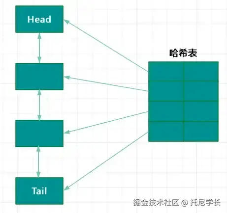 标准的LRU算法,其底层是通过双向链表 + Hash表进行实现的,双向链表可以保证数据的插入和删除操作的时间复杂度为O(1),而Hash表可以实现数据查找的时间复杂度为O(1),将两者的优势结合起来堪称完美。