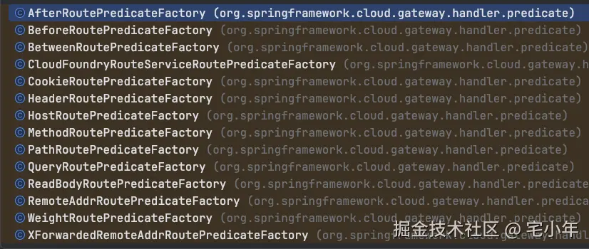 Spring Cloud Gateway 断言部分的代码设计结构还是比较有意思的,下一篇小年展开讲一讲,这里就先不展开了。