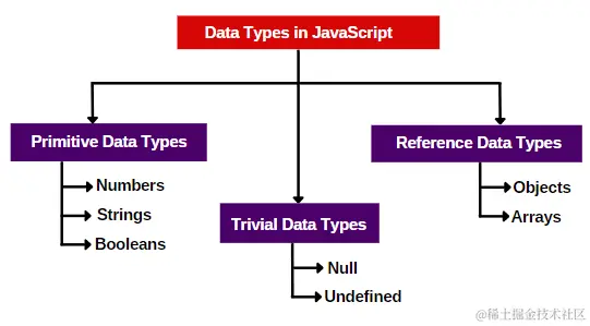 JavaScript 是一种动态的松散类型或鸭子类型的语言。这意味着我们不需要指定变量的类型,因为 JavaScript 引擎会根据变量的值动态确定变量的数据类型。