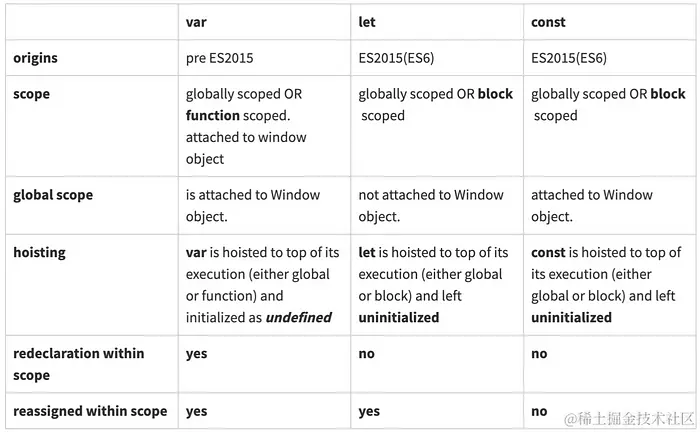 var、let 和 const 之间的区别?