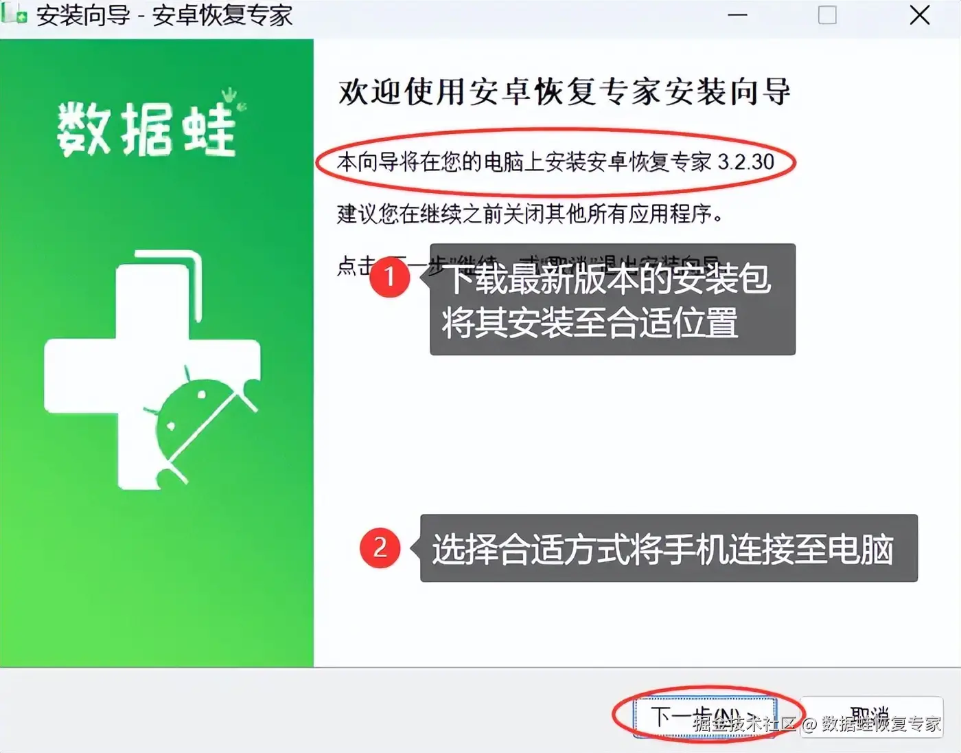 软件版本:数据 蛙 安卓恢复专家3.2.30