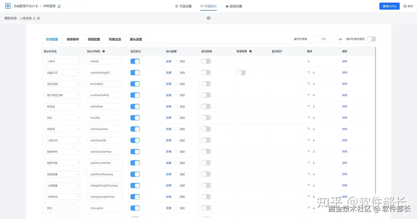 设计数据库模型,包括入库单、出库单、库存表等核心数据表。在JVS低代码平台中创建这些数据表,并设置字段属性、数据类型、索引等。