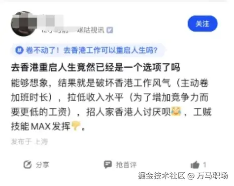 不过也有报道提到,部分内地优才在港工作时采取主动降薪和加班的策略,这似乎在某些公司或行业中引发了更强烈的竞争氛围,即所谓的**“内卷”**。