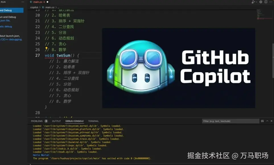 GitHub Copilot是由GitHub和OpenAI合作开发的AI助手,它可以嵌入到Visual Studio Code编辑器中,根据代码上下文生成代码建议,甚至完成整个函数或类的编写。