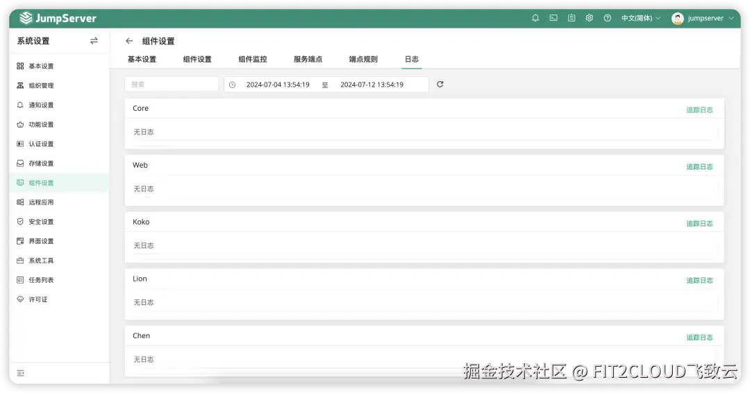在JumpServer v4.0版本中,为了能够让管理员以更简便的方式查看更多后台信息,JumpServer将组件日志内容迁移至前端界面显示,有效减少了管理员在多个平台的切换操作。同时,JumpServer新增系统组件日志查看功能,旨在提升管理员监控系统日志的便捷性。