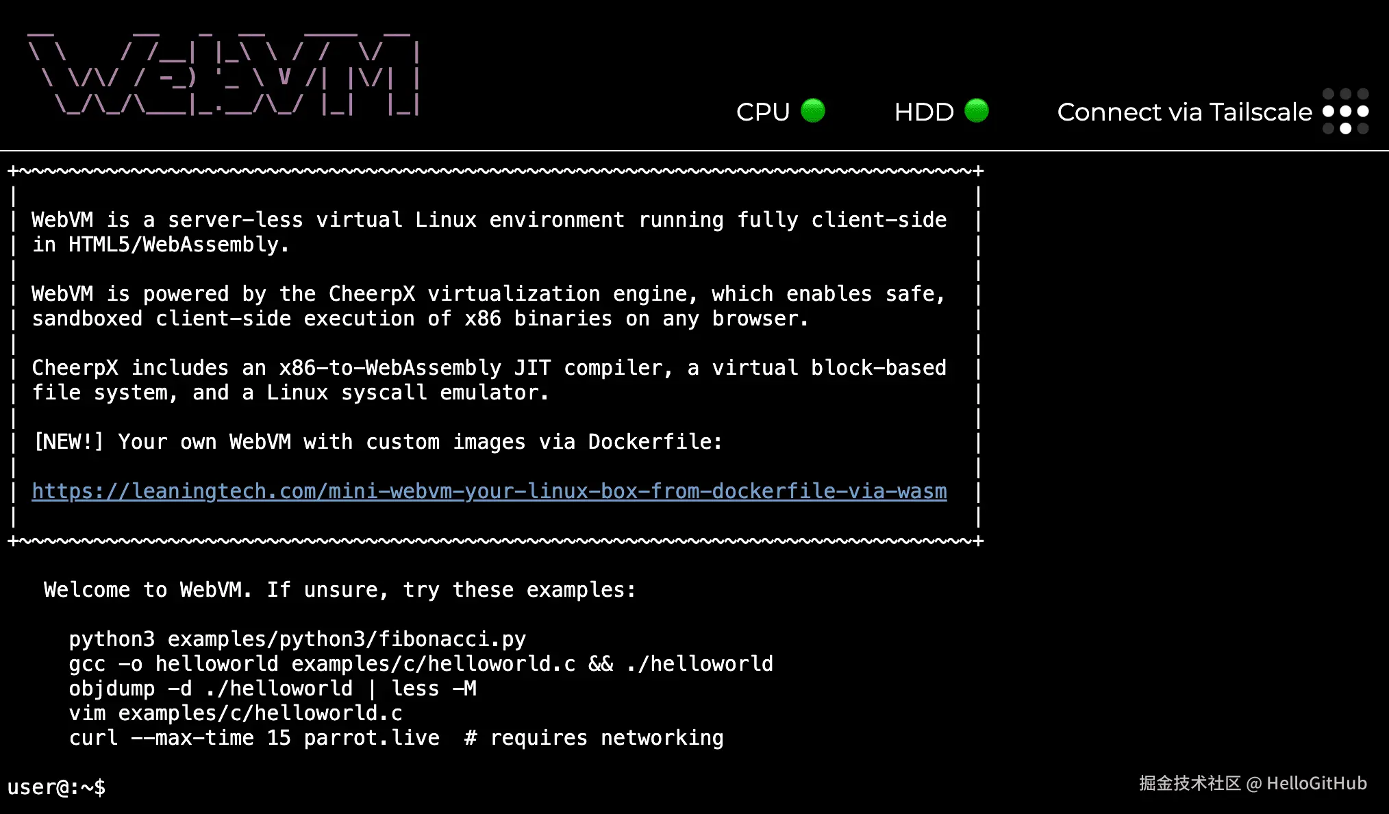 - 1.1 在浏览器中运行 Linux 虚拟机:WebVM