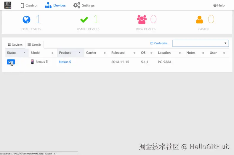 2.1 浏览器控制多台 Android 设备的平台:stf
