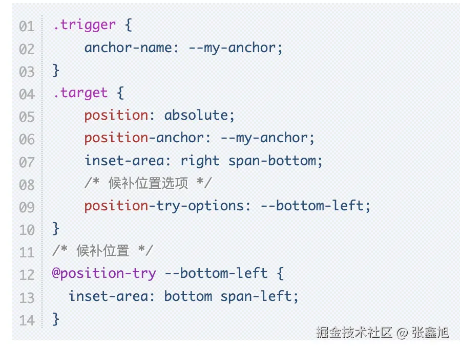 更多更完整的内容,参见这篇大作:“告别JS浮层,全新的CSS Anchor Positioning锚点定位API”