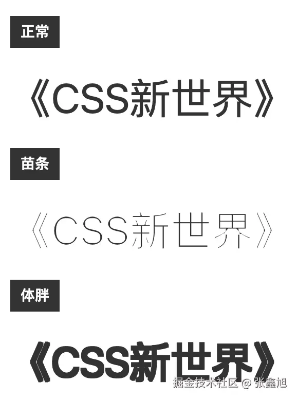 详见我整理的这篇文章:“不使用font-weight等CSS实现文字变瘦或变胖效果”。