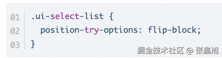 其次,我们可以使用@position-try规则以及position-try-options属性增加锚点定位的候补定位位置。
