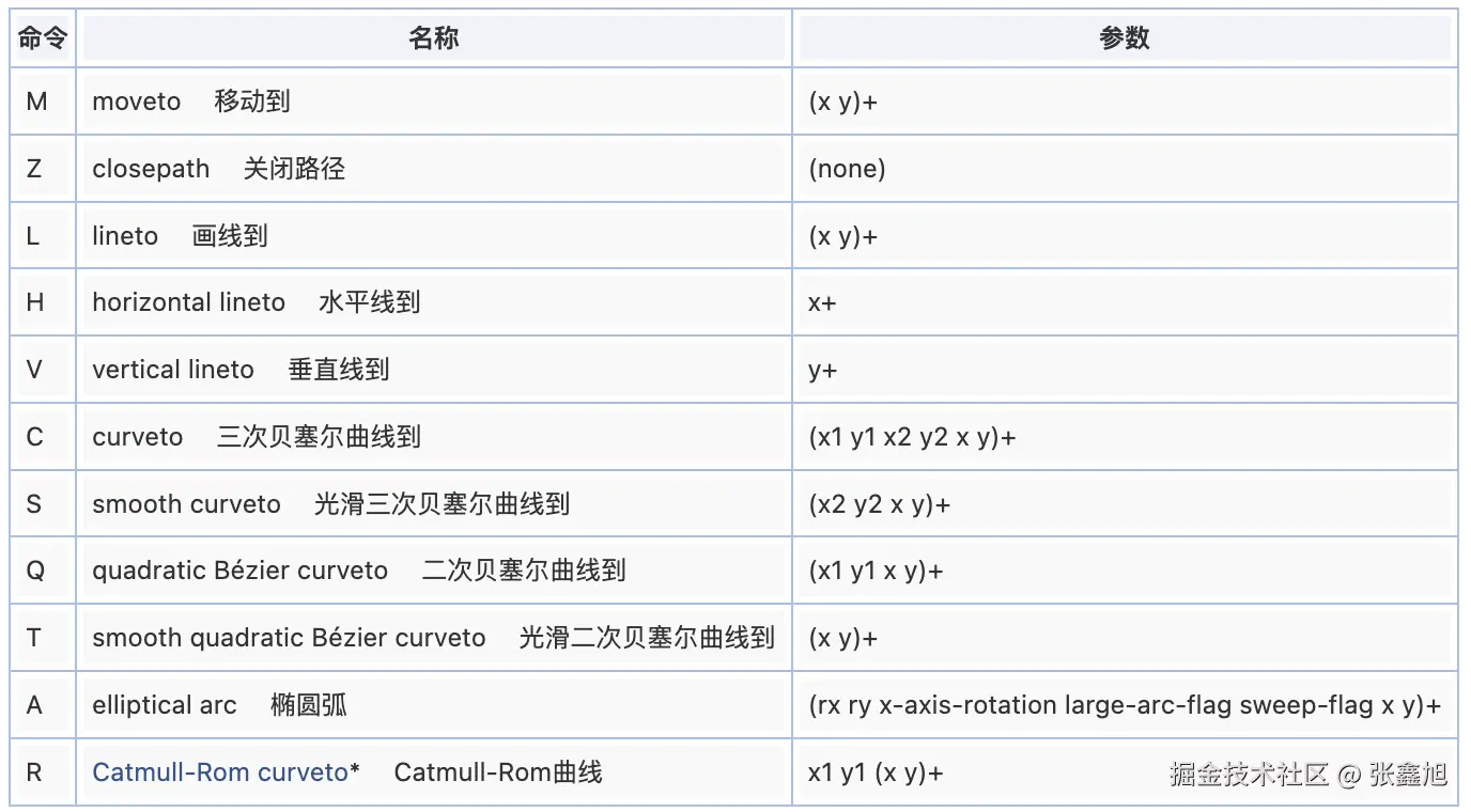 详见“深度掌握SVG路径贝塞尔曲线指令”一文。