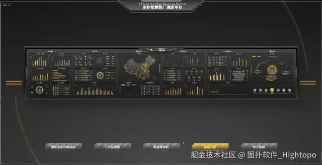 图扑 HT 通过集成现场大量数据进行流程分析,整合钢铁厂全场风貌,以及烧结、炼铁、炼钢、轧钢等重要工序。为生产、经营、决策提供更详细和深入的数据,优化钢铁生产经营中的各个环节。