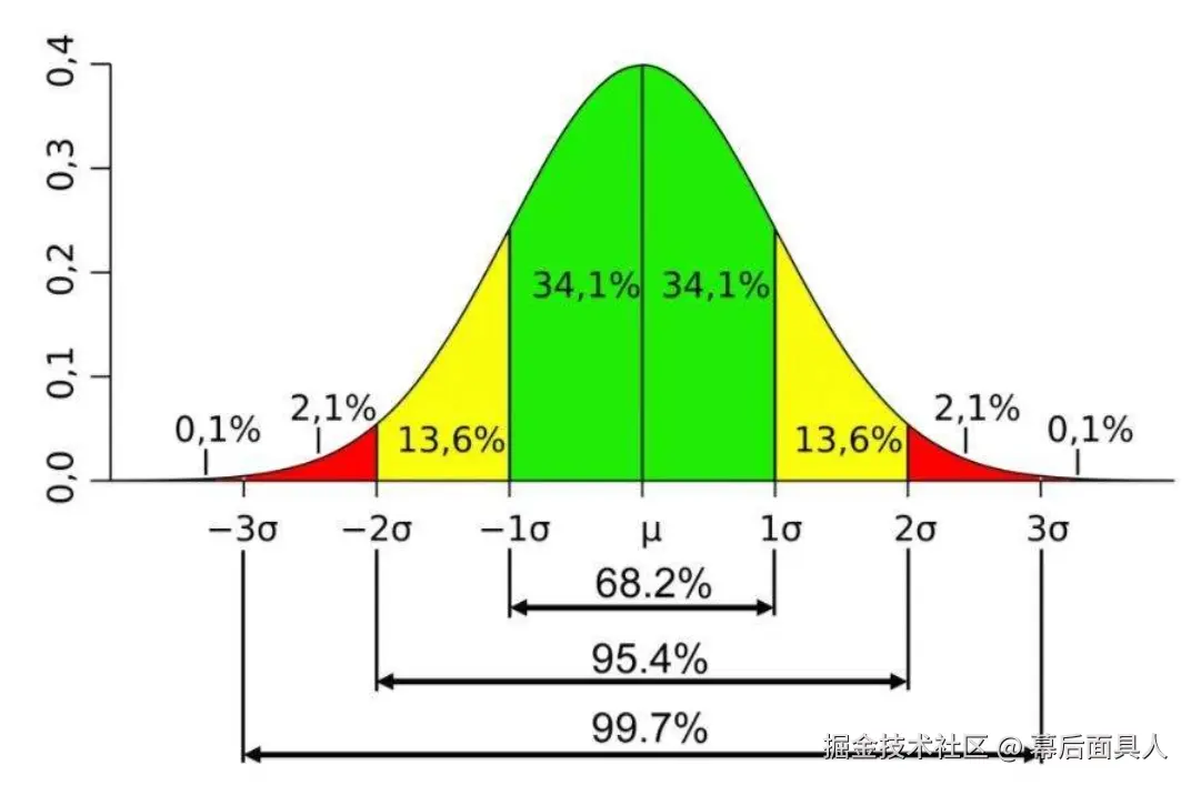 正态分布的概率:1个标准差范围内的概率为68.26,2个标准差范围概率约为95.46,三个标准差范围内的概率99.73