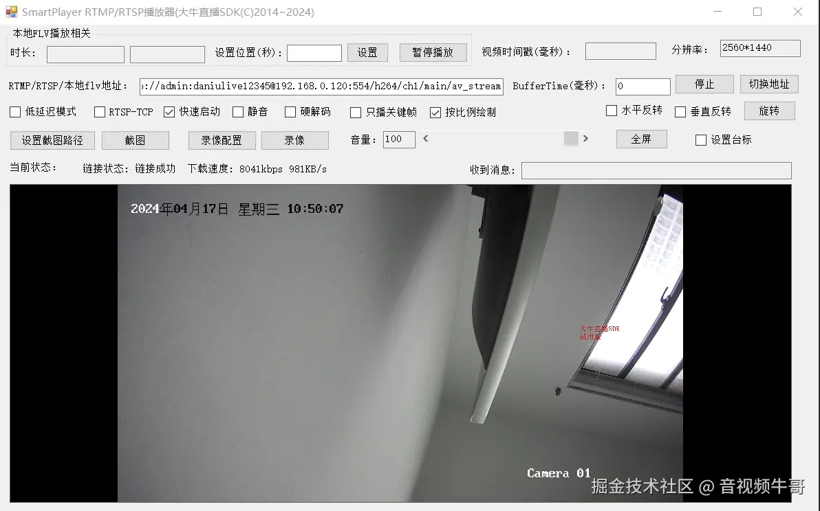 我们在对接RTSP、RTMP推拉流播放的时候,开发者提到这样的技术诉求,他们在用于安检等场景的时候,采集分辨率甚至需要4K+,帧率需要达到50帧以上,码率也非常高,这就对推流和播放模块,提出了更高的要求。