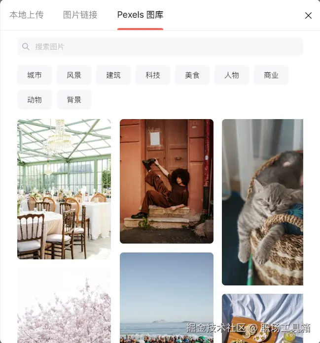 替换PPT底图时,可上传本地的图片,也可以从博思AIPPT集成的无版权图库Pexels,搜索查找喜欢的图片,设置为PPT的底图。