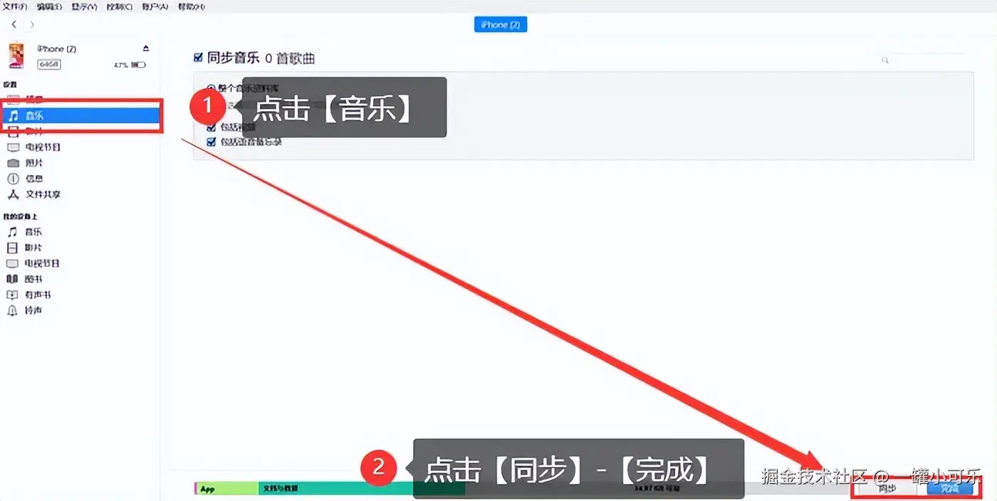 步骤2:如果是通过第三方音乐应用下载的音乐,需要将音乐文件导入到iTunes,并同步到您的iPhone。