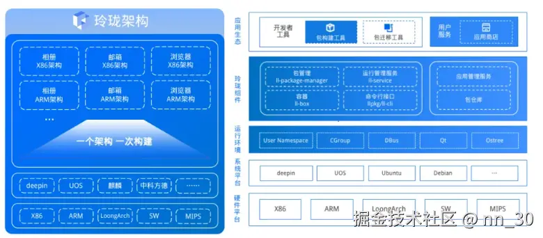- 应用分发机制:搭建跨发行版应用分发体系,让玲珑应用能够触达到更多 Linux 发行版用户,降低开发者的应用维护成本