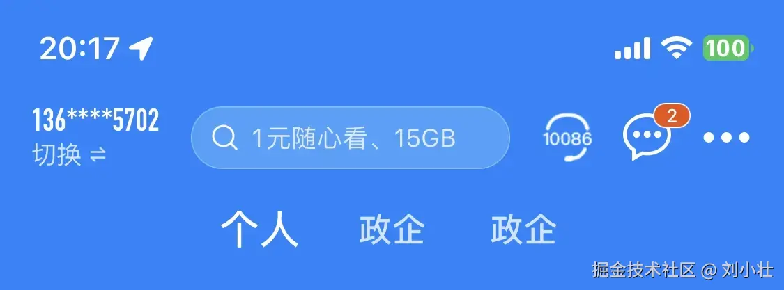 上面的布局场景很简单,但如果是下面这种复杂搜索栏的场景,就很适合用UIStackView,通常搜索栏中的按钮会要求某些条件下展示,某些条件下隐藏,同样的搜索栏的宽度也是动态变化的。例如未登录时没有搜索栏右侧的10086客服电话按钮,搜索栏右侧贴着消息按钮的。