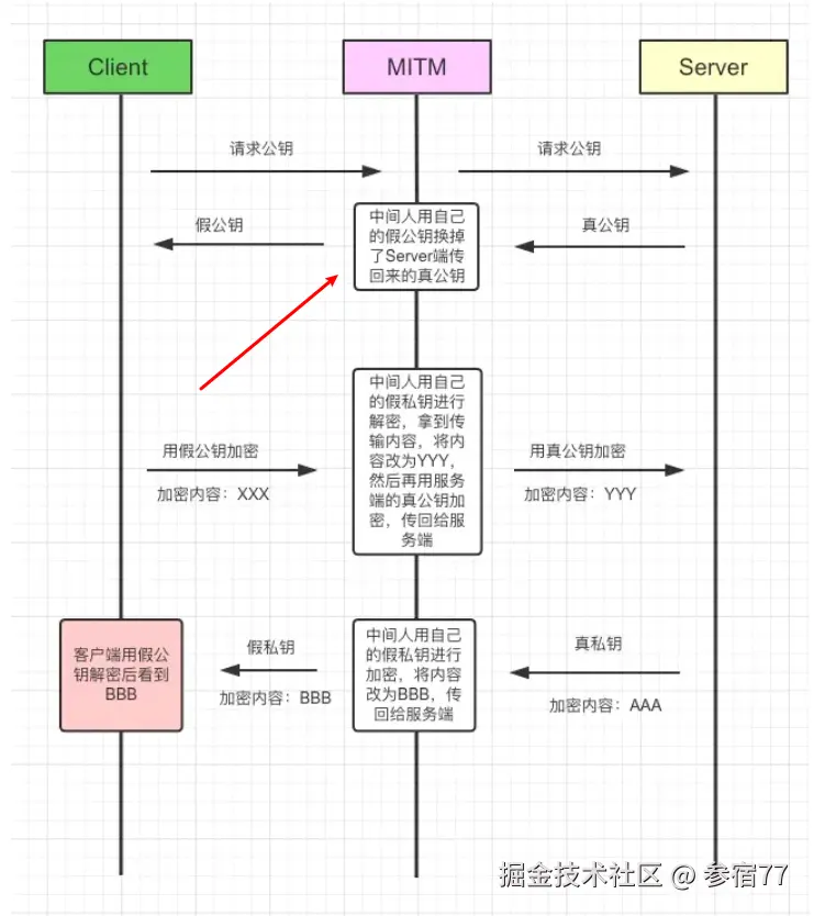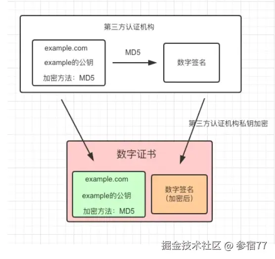 - 浏览器安装后会本地自带 权威第三方机构公钥,对数字签名进行解密,拿到HashA