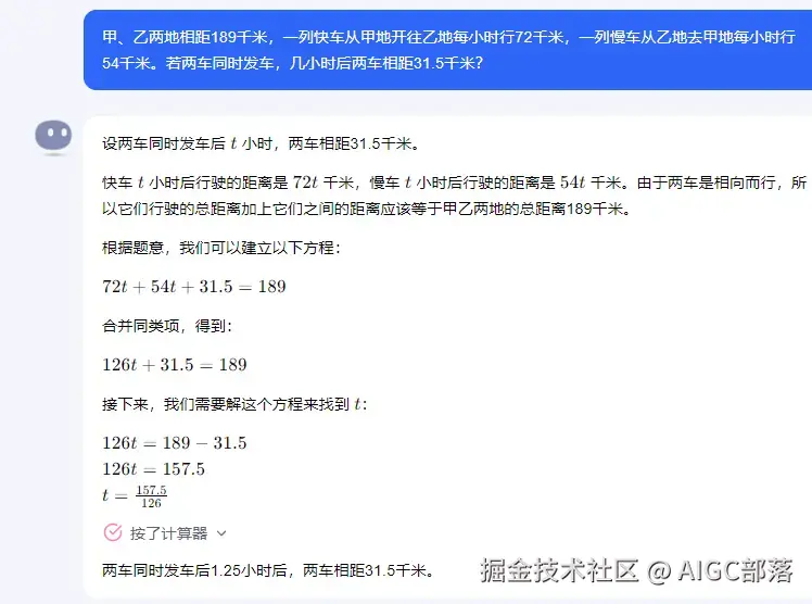 可见,这个数学问题不是kimi大模型本身来回答的,而是调用了计算器这个外部工具软件来回答的。