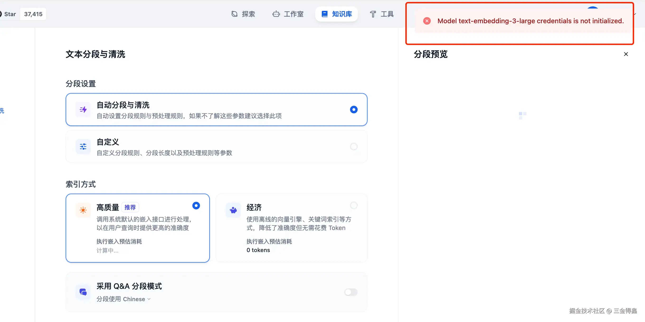 因为咱们本次使用 Ollama 来作为 Dify 的 AI 模型,所以在创建知识库时会有一些问题: