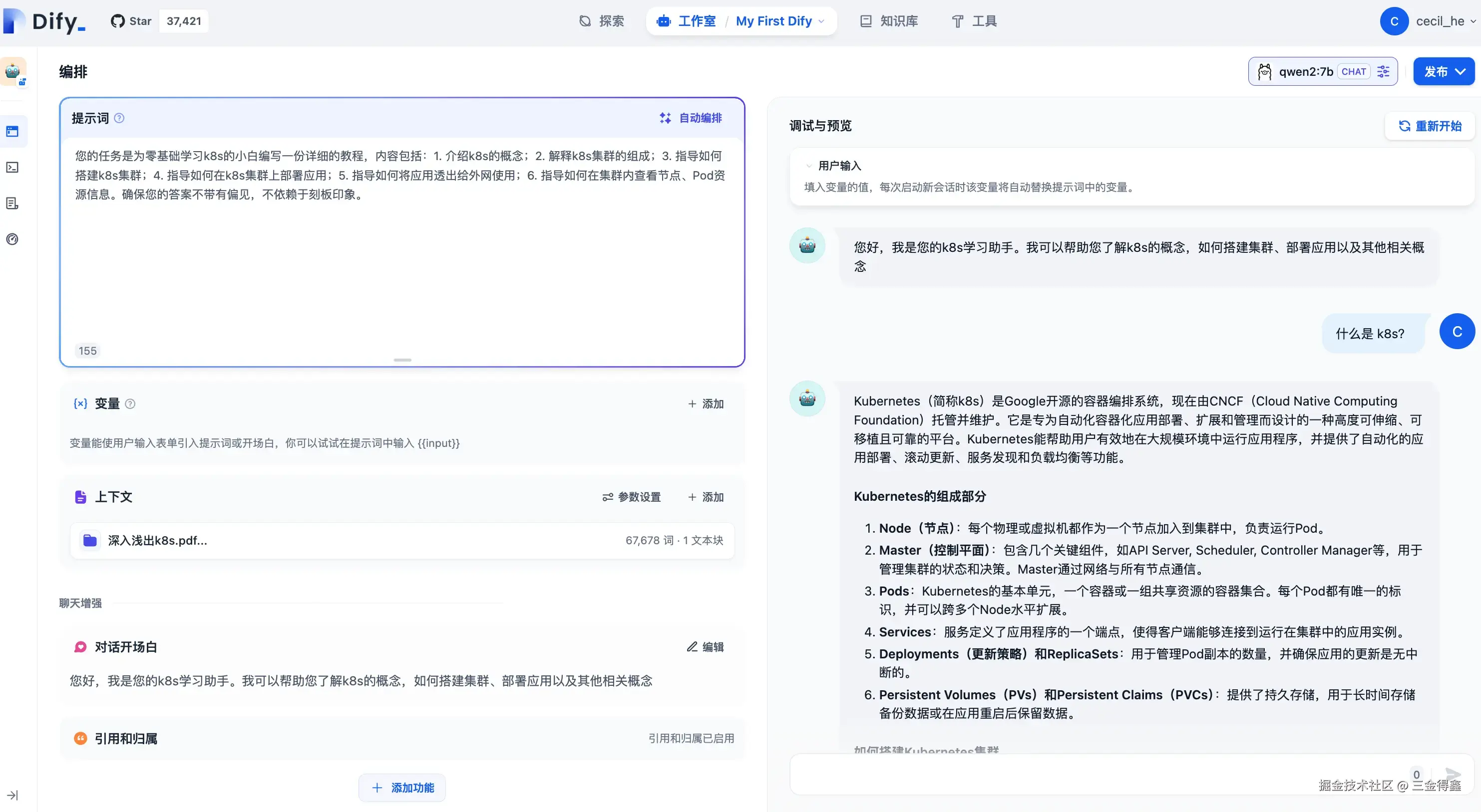 我们可以在知识库中添加大量的 K8s 相关的资料,打造一款 K8s 大师应用。是不是很棒😁