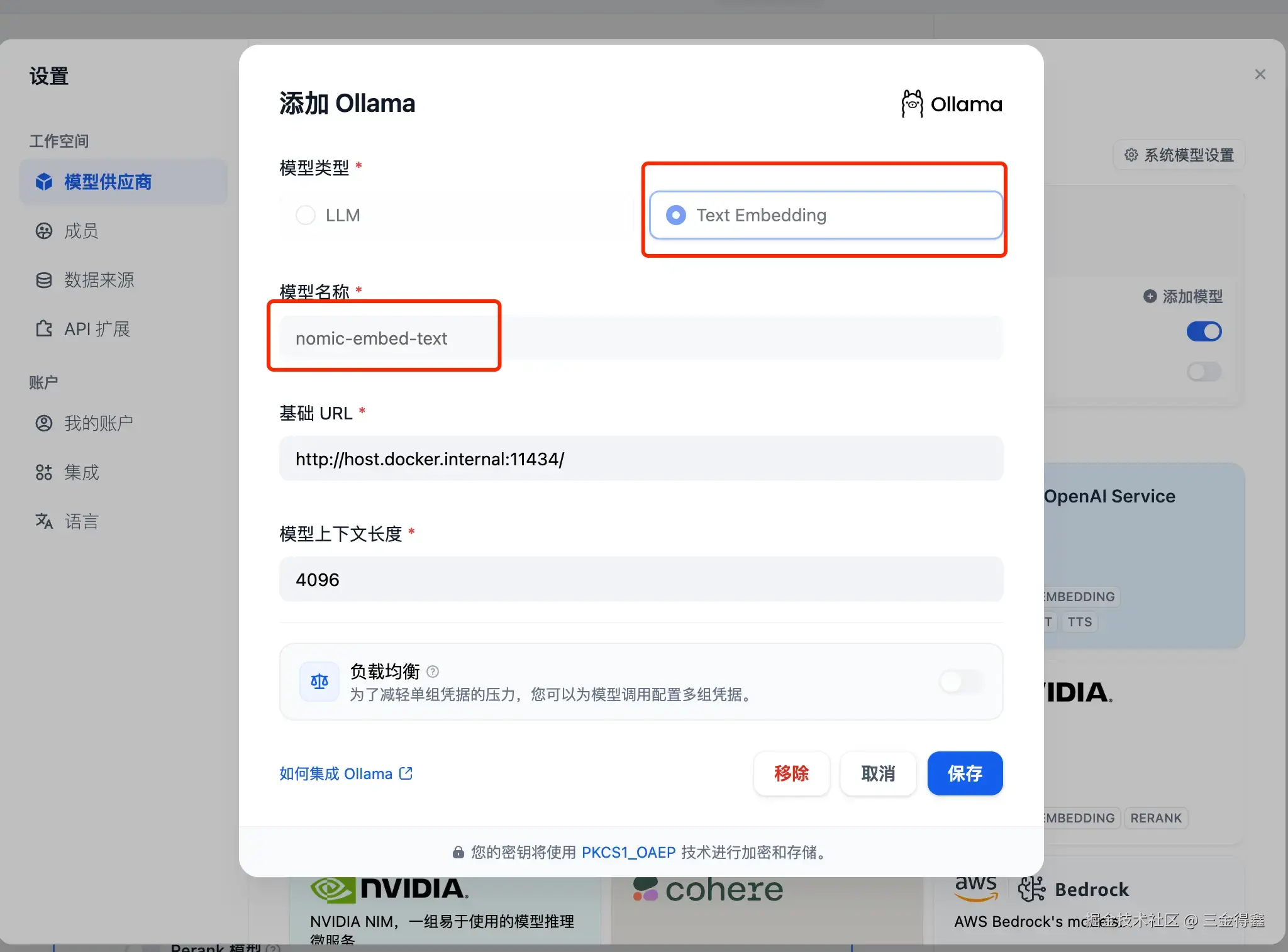 然后在 Ollama 模型设置中选择 Text Embedding: