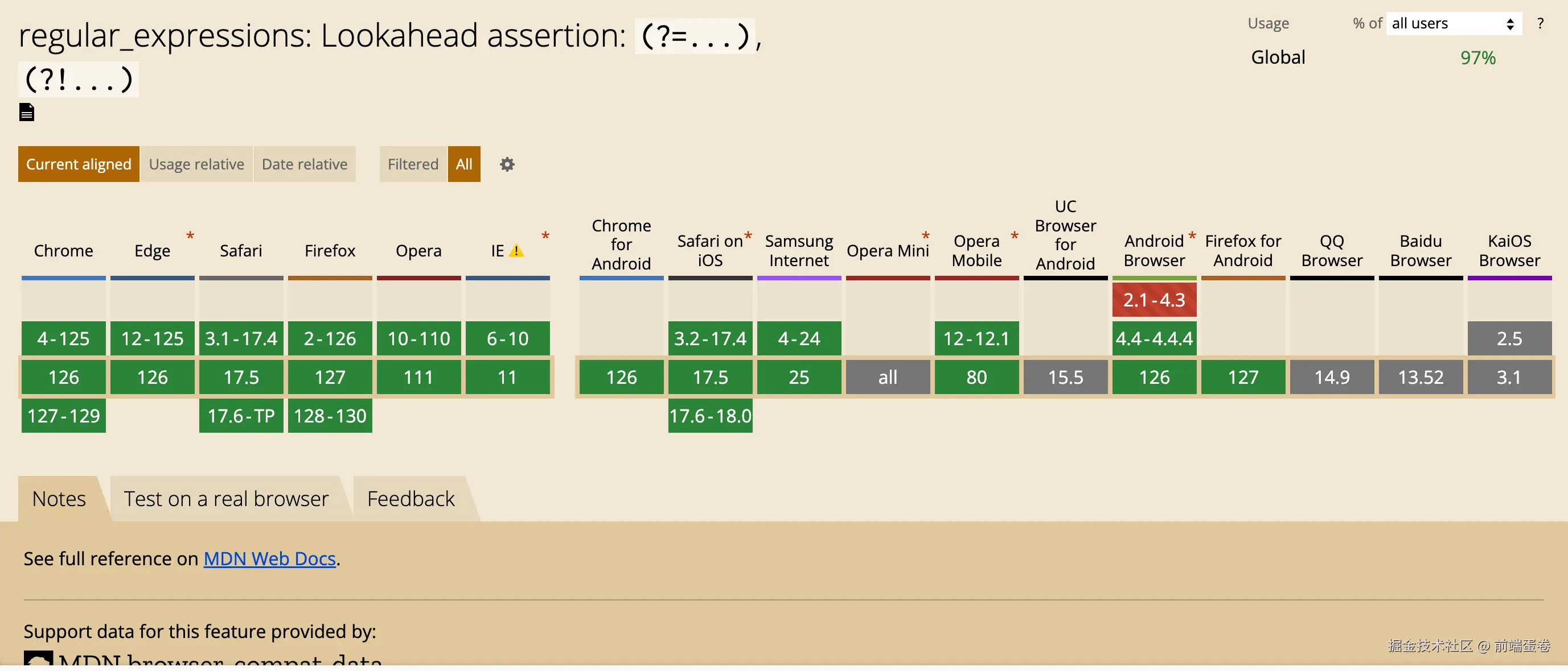 后瞻断言的兼容性差一些,除了在 Safari 浏览器中兼容性稍微差点,其他的都支持度很不错。