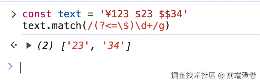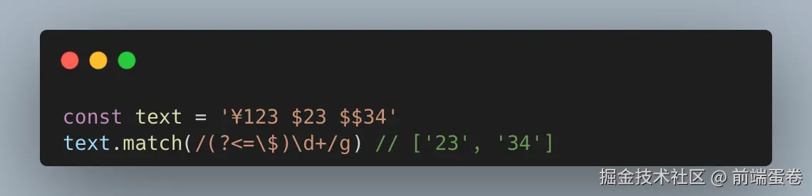 这里匹配 $ 后面的金额, 我们可以用正向后瞻断言去匹配出来。只有这个数字前面的内容满足 $ 就会匹配上,并返回到最终的结果中去。