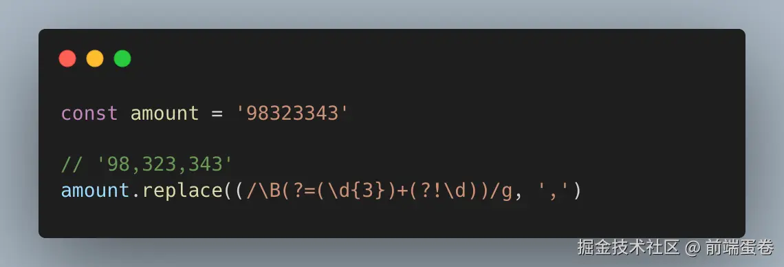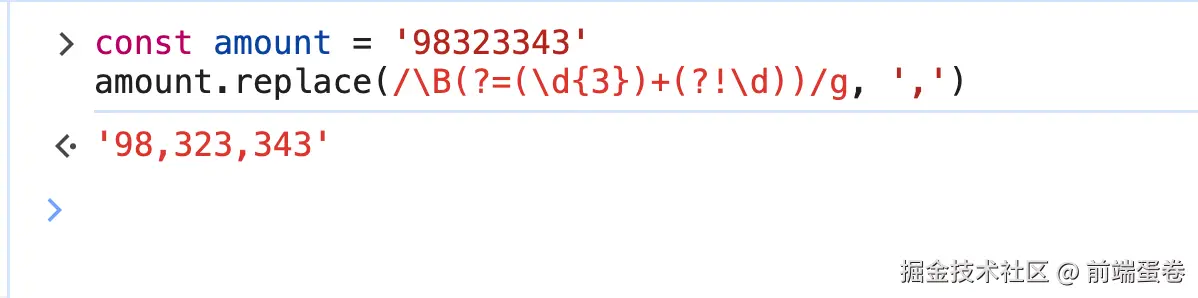 通过上述正则匹配到的结果,再使用 replace 方法用来替换为逗号, 即可实现金额的千分位