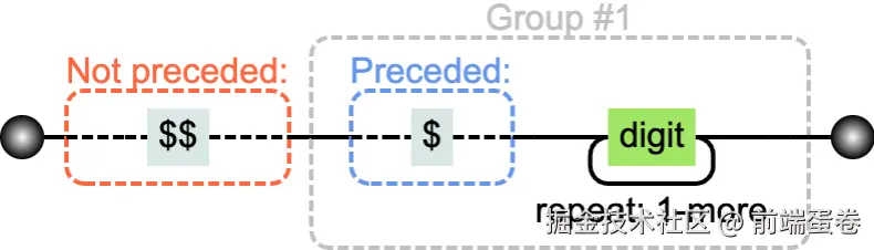 可以从可视化正则里面看出,负向后瞻就是只要当前匹配项前面不是 $$的时候,才进行匹配,所以 $$34 就会被忽略掉