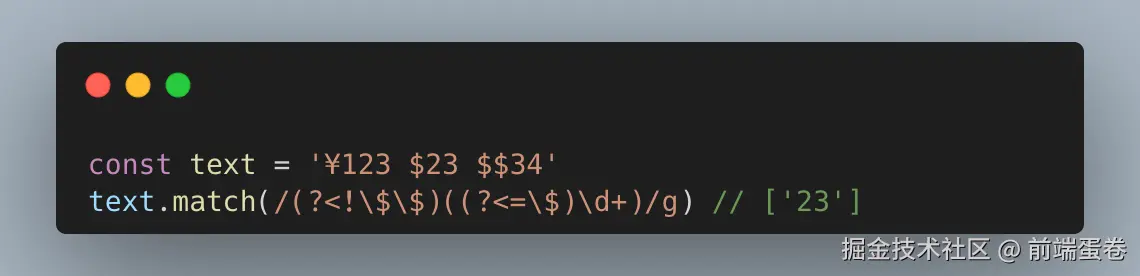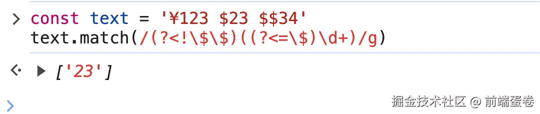 不过为了应用这个例子,我这里是故意这样处理的,实际上为了满足只匹配一个 $ 的金额数字的话,我们可以直接在上面的 正则加上 \s 即可, 即: /(?<=\s\$)\d+/g
