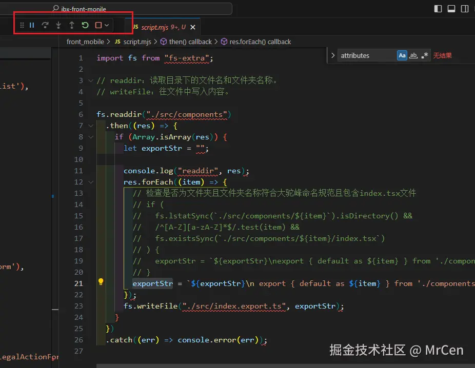 fs.readdir('./src/components') .then(res => { if (Array.isArray(res)) { let exportStr = ''; res.forEach(item => { exportStr =