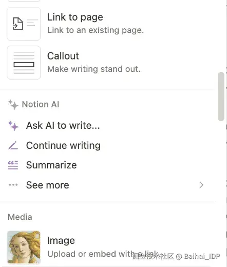 第三种解决方案示例:Notion 菜单栏中的 AI actions 选项