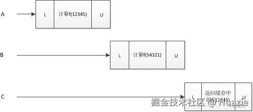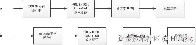 对于计算相同的数据,我们更希望线程 X 正在计算 f(12345),而其他线程在计算 f(12345) 时,它们能够等待线程 X 计算结束,然后去查询缓存 f(12345) 的结果。