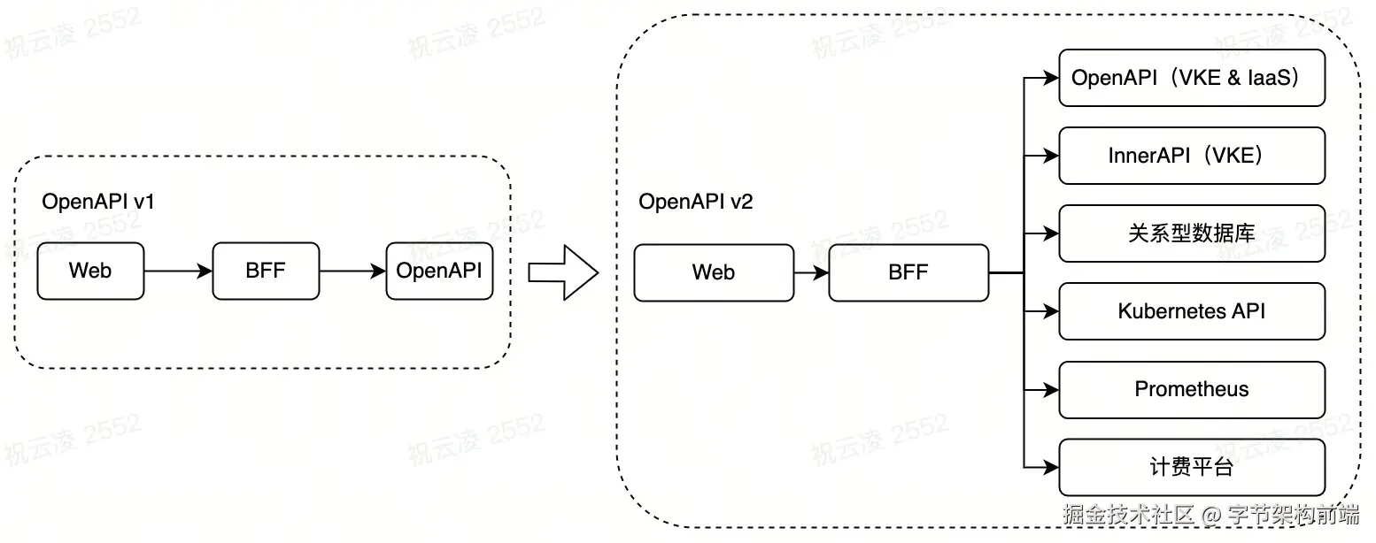 OpenAPI v1 中资源数据由 OpenAPI 接口返回,而接口从 apiserver 获取,一方面频繁从 apiserver 取资源数据增加了 apiserver 的负担,不利于系统稳定性,另外一方面资源数据只是前端控制台页面展示需要,对于 OpenAPI 用户大部分情况不需要,因此 OpenAPI v2 改造后,OpenAPI 不在返回资源相关的数据。