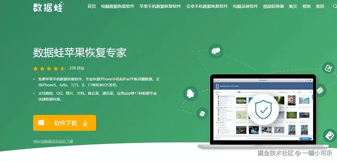 除了以上2种方法之外,我们还可以通过专业的苹果手机恢复软件来恢复备忘录的内容。数据 蛙 苹果恢复专家就是一款专业的专门针对苹果手机数据还原的软件,使用这款软件可以备份手机上的数据(退出软件后,将自动删除备份的数据)。通过连接电脑在一定程度上可以找回大量丢失的数据信息,因此,我们就能解决备忘录删除了怎么恢复的问题。下面是详细的操作步骤。